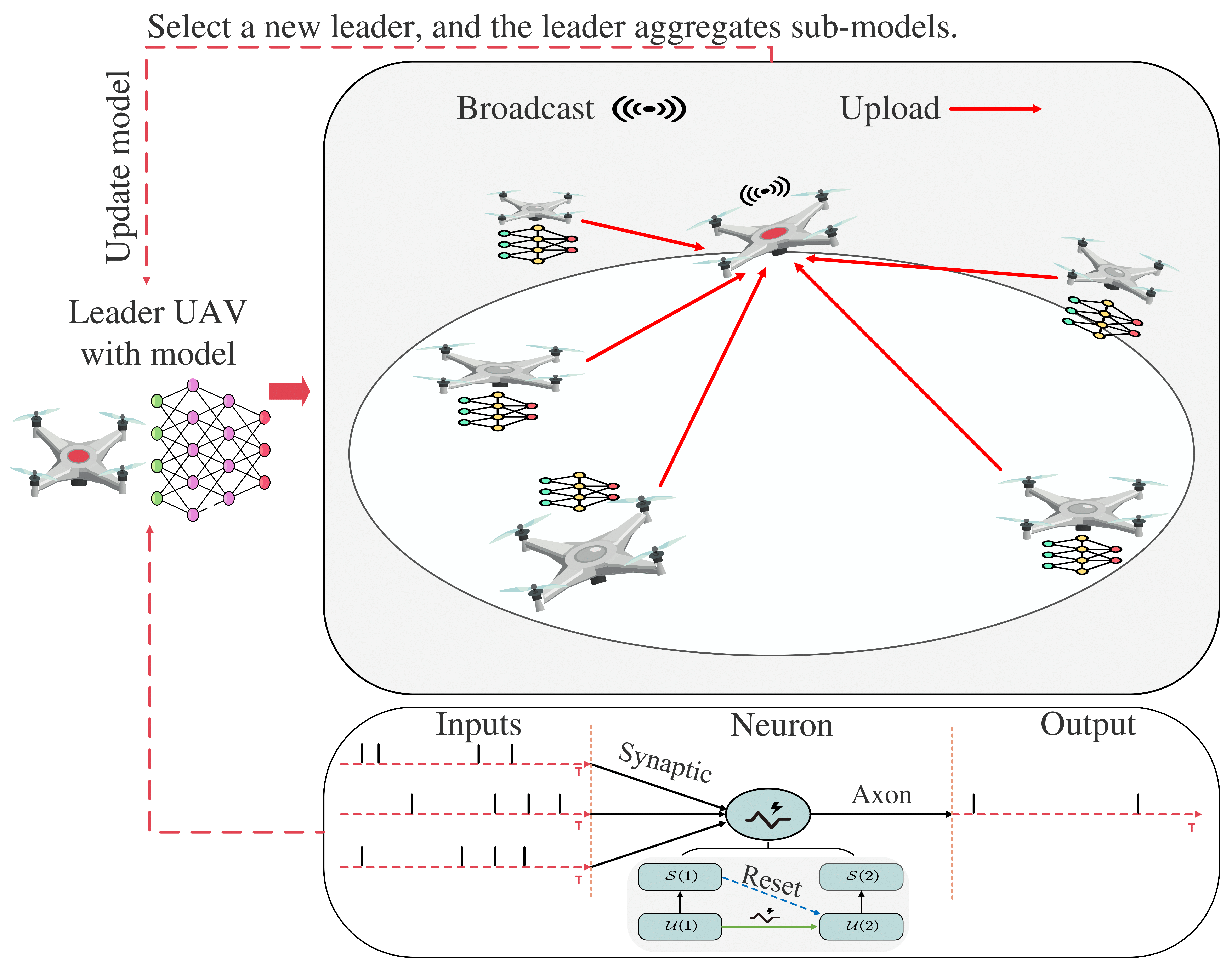 - [J3] Chen Shang, Dinh Thai Hoang, Min Hao, Dusit Niyato, Jiadong Yu, “Energy-Efficient Decentralized Federated Learning for UAV Swarms with Spiking Neural Networks and Leader Election Mechanism,” IEEE Wireless Communications Letters, vol. 13, no. 10, pp. 2742-2746, Oct. 2024. (IF=4.6, JCR Q1) [IEEE Link]